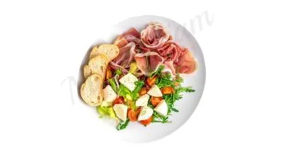 mozzarella di bufala, tomates cerises, jambon de parme et roquette | ||