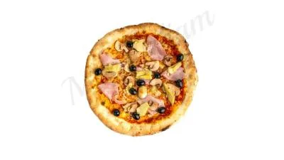 sauce tomate, mozzarella, champignons, jambon cuit, olives et artichauts | ||