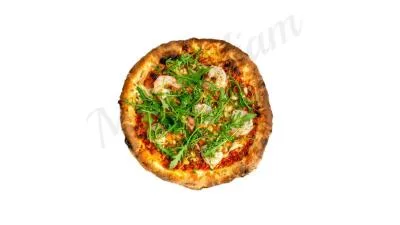 sauce tomate, mozzarella, 7/8pcs scampis, ail, persil et roquette | ||