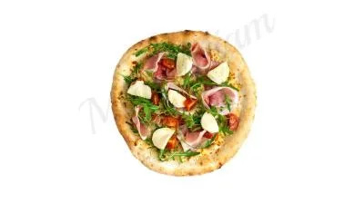 sauce tomate, mozzarella, jambon de parme, roquette et parmesan | ||